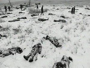 Sherman and Sheridan’s troops conducted more than one thousand attacks on Indian villages, mostly in the winter months, when families were together. The U.S. army’s actions matched its leaders’ rhetoric of extermination. As mentioned earlier, Sherman gave orders to kill everyone and everything, including dogs, and to burn everything that would burn so as to increase the likelihood that any survivors would starve or freeze to death. The soldiers also waged a war of extermination on the buffalo, which was the Indians’ chief source of food, winter clothing, and other goods (the Indians even made fish hooks out of dried buffalo bones and bow strings out of sinews).